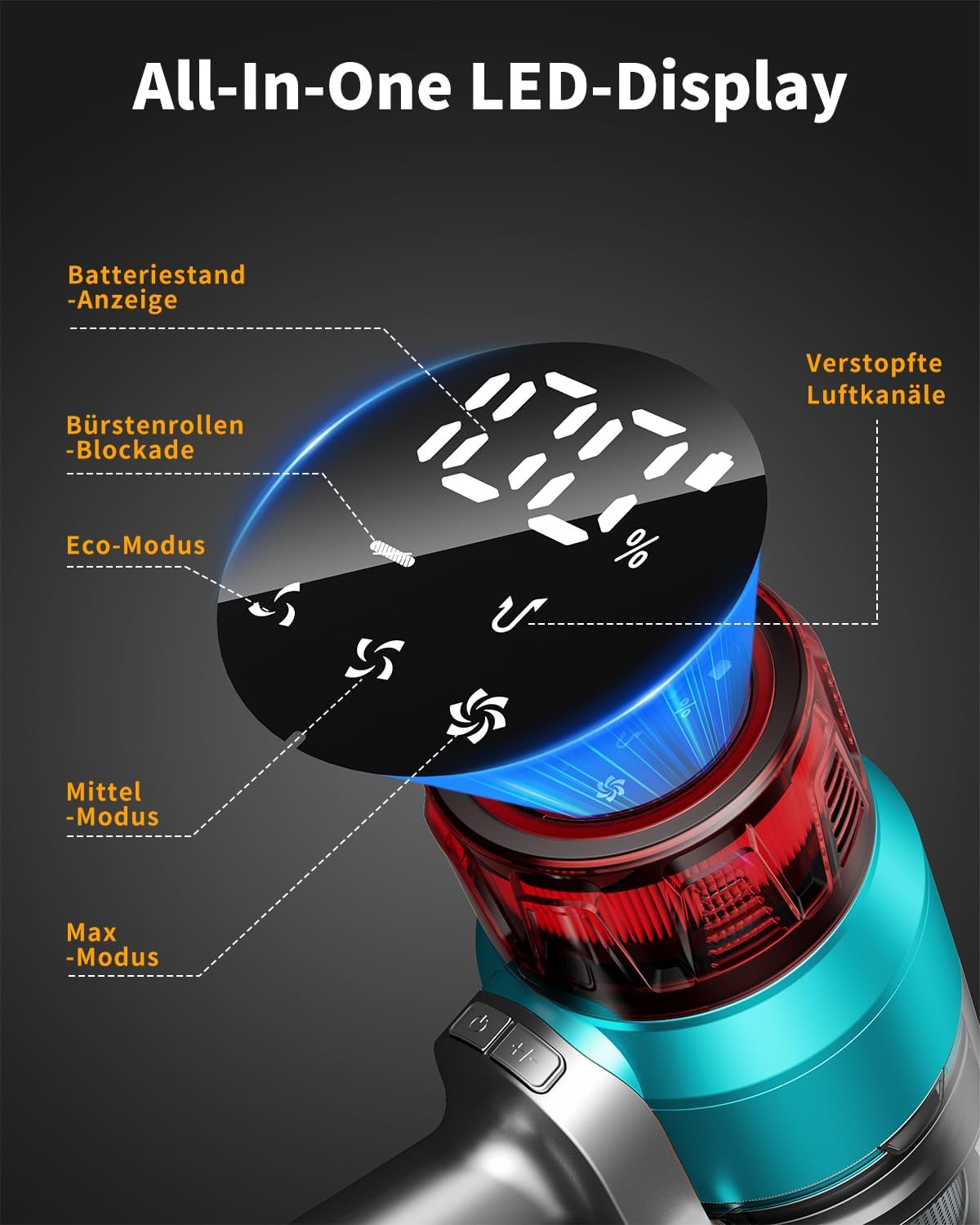 【OLED-Farbdisplay-Design】Der staubsauger kabellos für den Heimgebrauch ist mit einem größeren OLED-Farbdisplay ausgestattet, das Ihnen mühelos den aktuellen Status des akku staubsauger tierhaare. Das Display des Life Vac zeigt auch die verbleibende Batterieleistung an und warnt Sie bei Verstopfung des akku staubsauger, um Ihnen mehr Bequemlichkeit zu bieten.